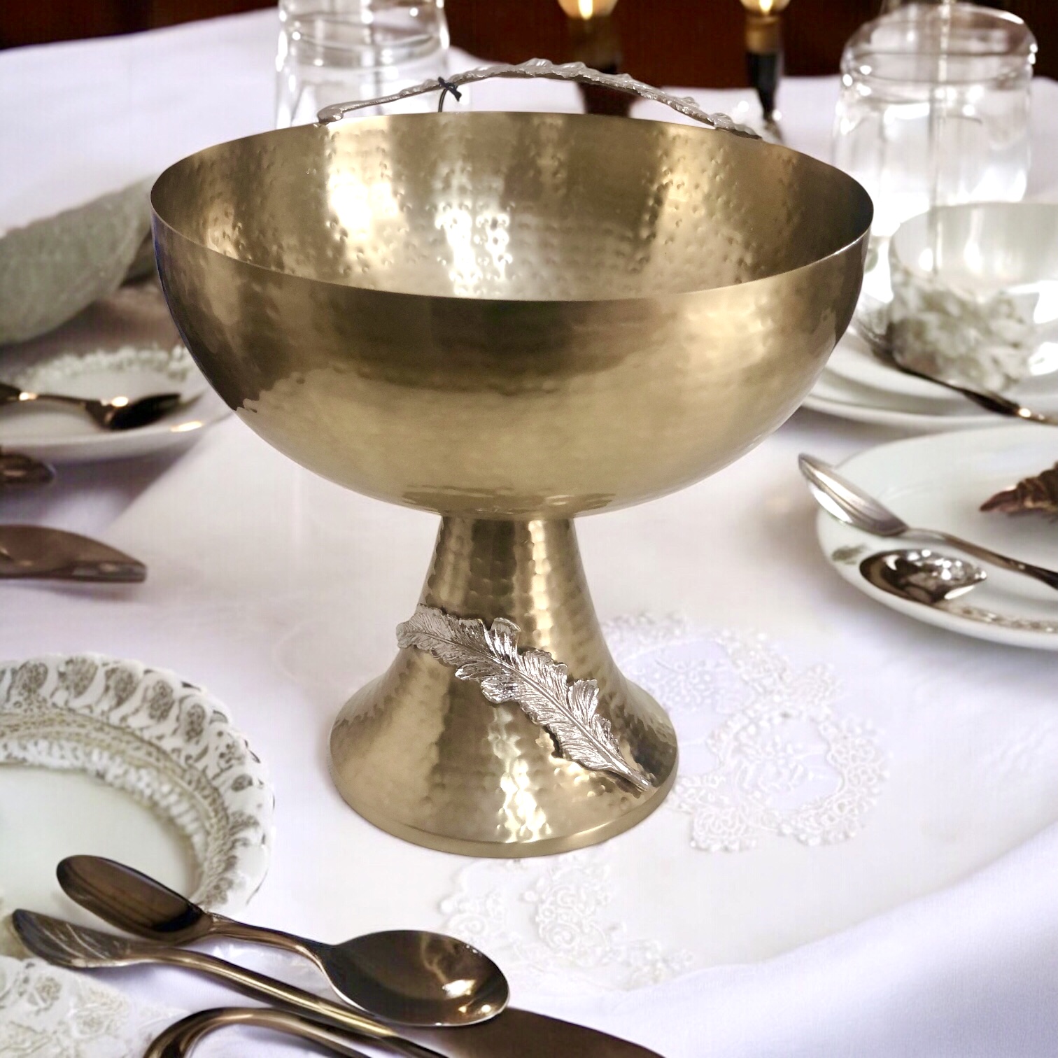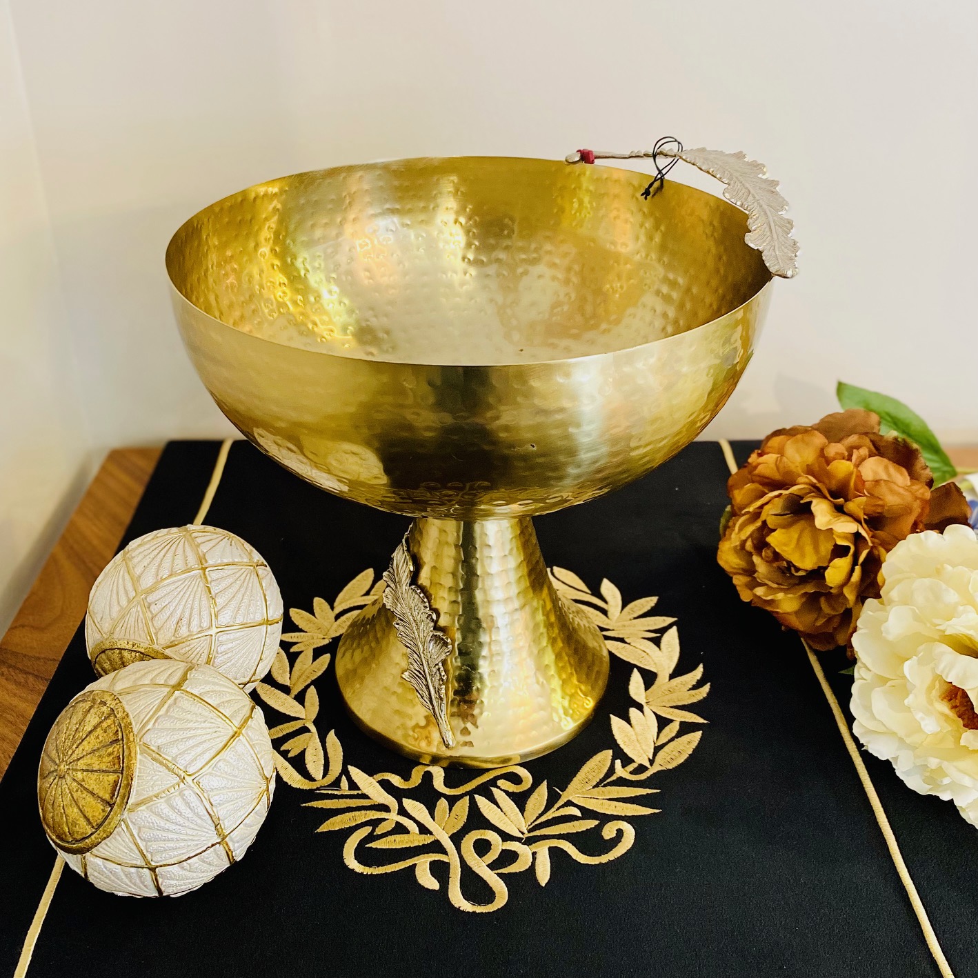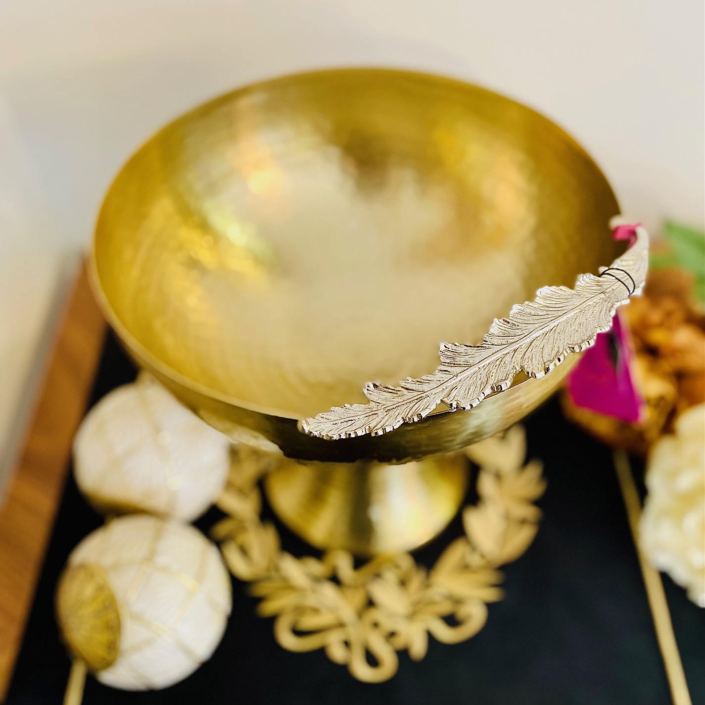 Gold-Gümüş Yapraklı Ayaklı Kase