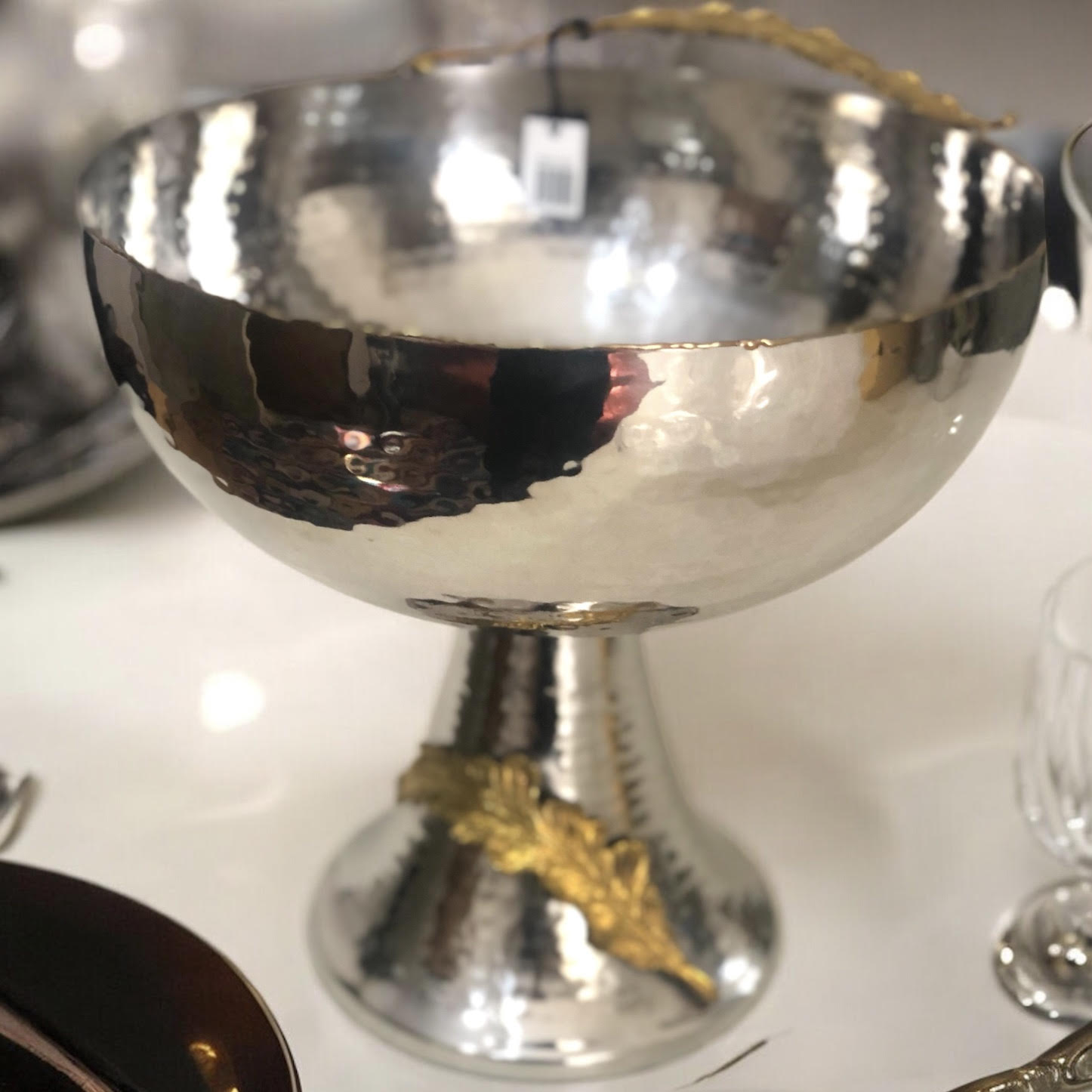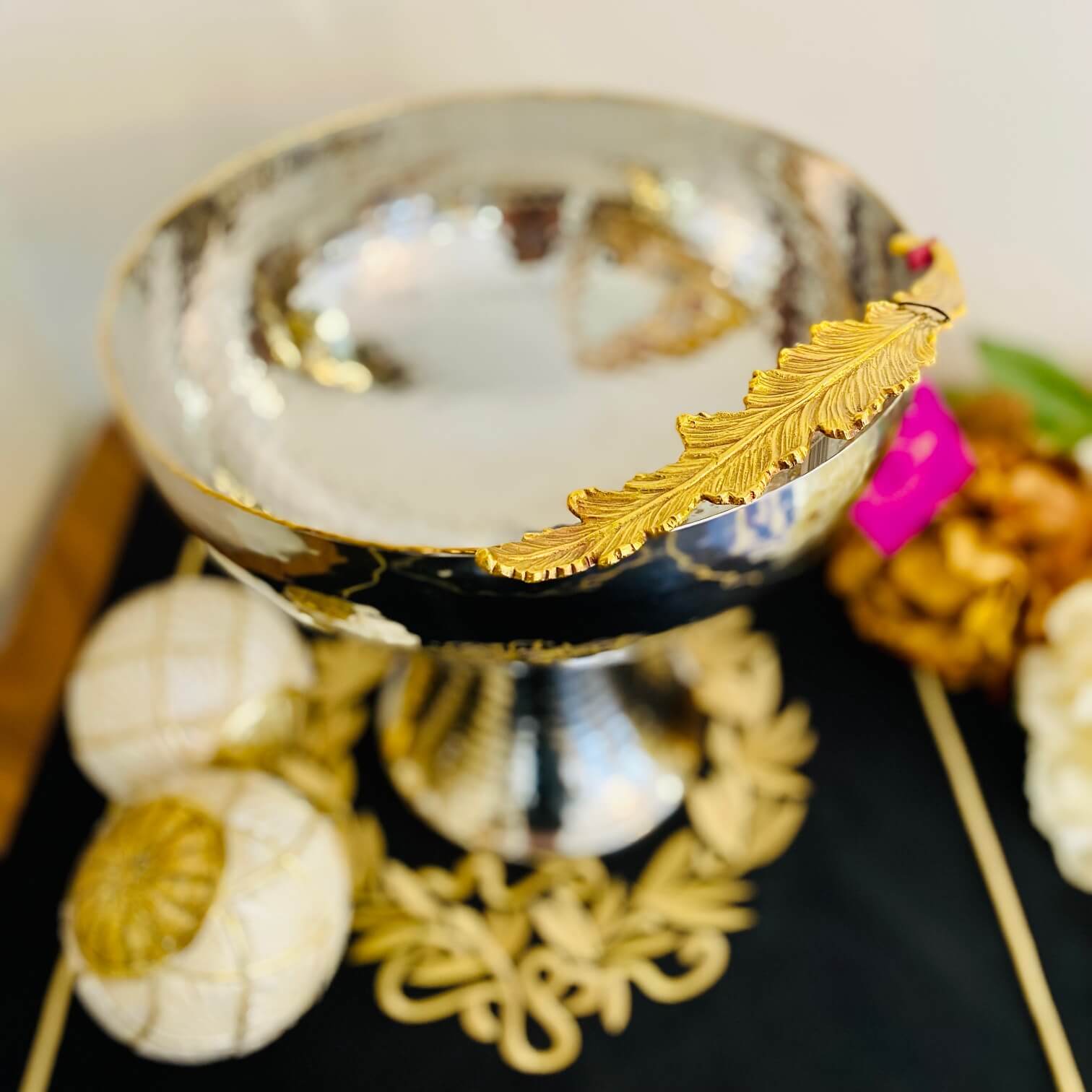 Gümüş-Gold Yapraklı Ayaklı Kase