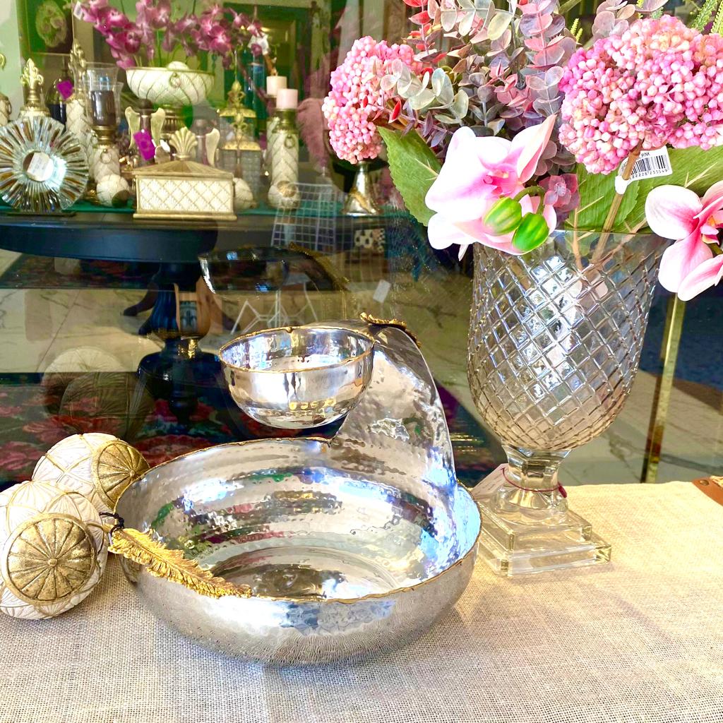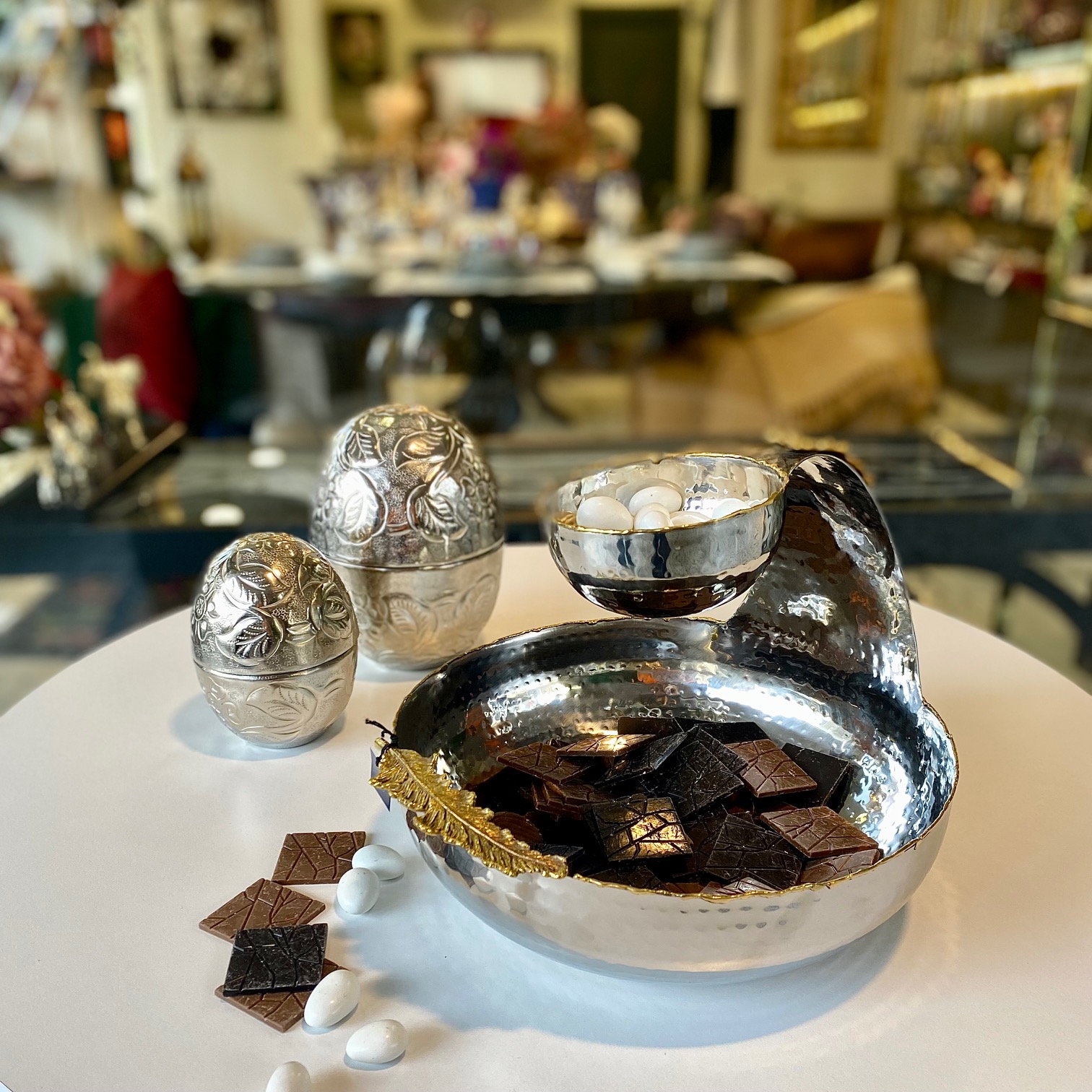 Dövmeli İki Katlı Silver Sunumluk, Şekerlik (Porio)