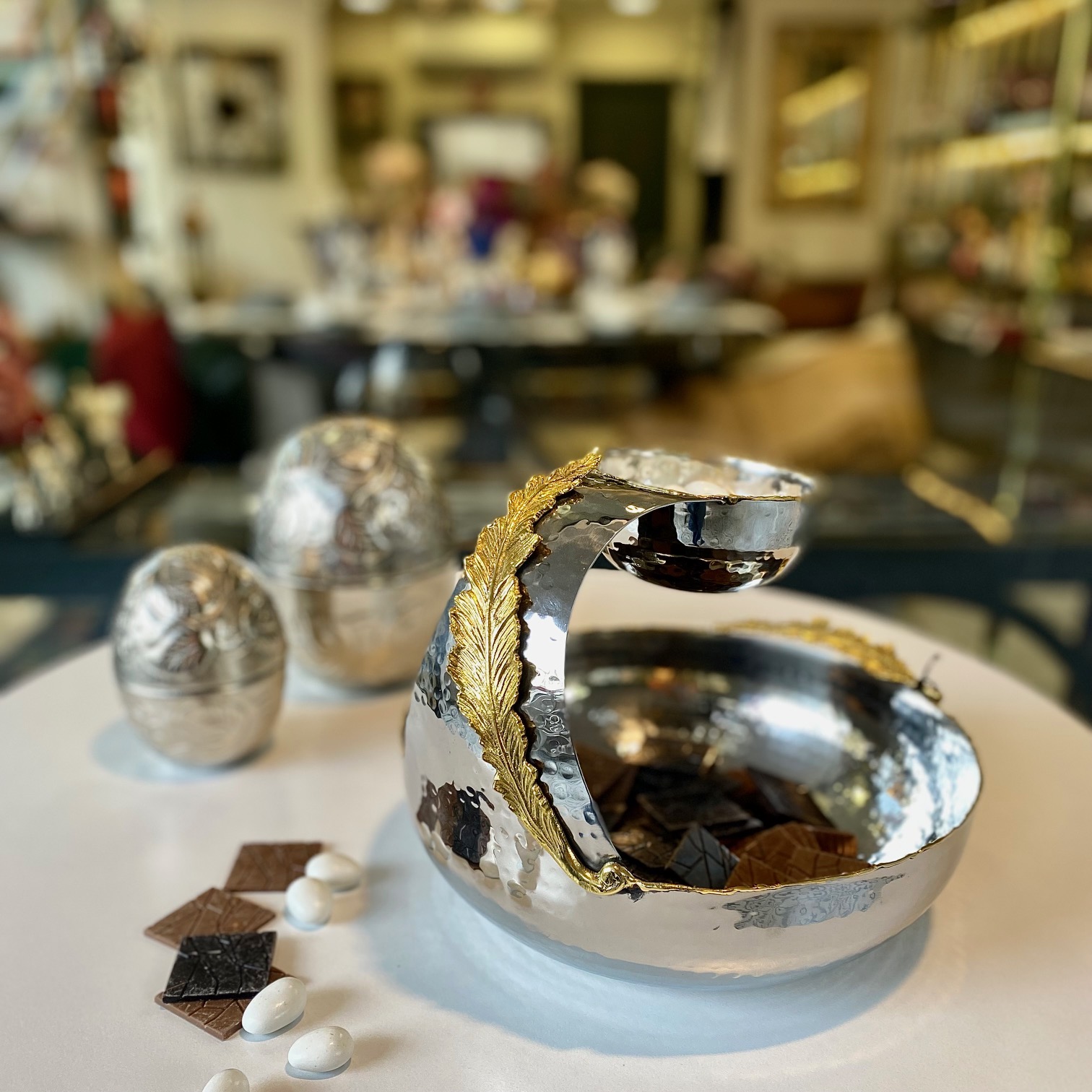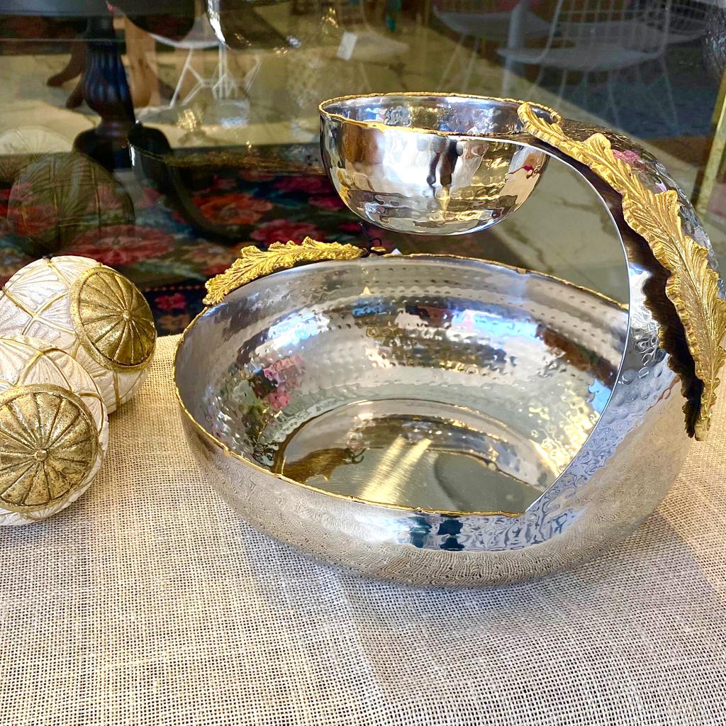 Silver Rengi Zemin Üzerinde Gold Yaprak Motifli,  İki Katlı Sunumluk
