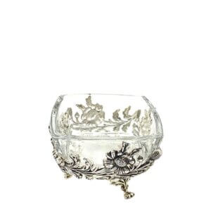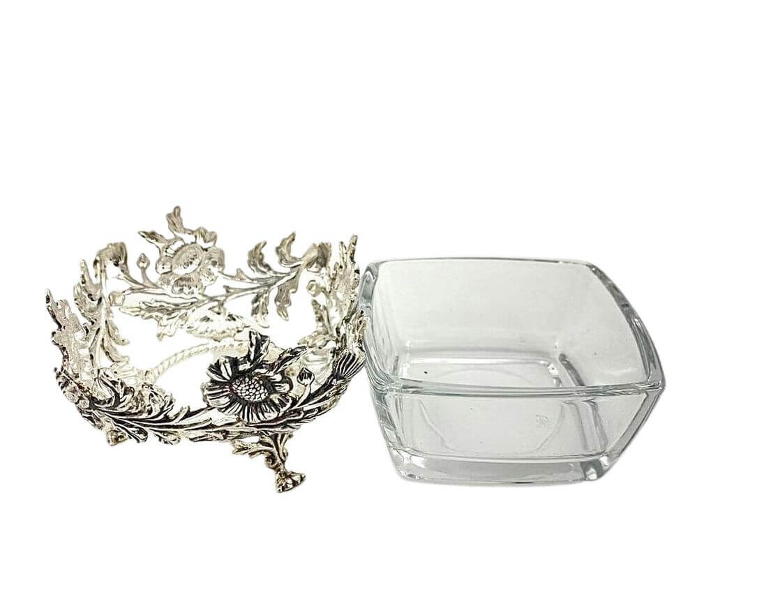 ÜRÜNÜMÜZ MİKRON GÜMÜŞ KAPLAMADIR. AYAKLI MİKRON GÜMÜŞ KAPLAMA CAM KASELİ İSTER LOKUMLUK İSTER REÇELLİK OLARAK KULLANACAĞINIZ BU ZARİF ÜRÜN SOFRALARINIZIN DEKORASYONUNA AYRI BİR ŞIKLIK VE HAVA KATACAKTIR.